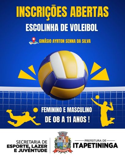 Estão abertas as inscrições para Iniciação ao Vôlei Masculino e Feminino para crianças de 8 a 11 anos. As aulas são coordenadas pela professora Andressa Cunha às segundas e quartas-feiras, das 8h30 às 9h30, no Ginásio Municipal “Ayrton Senna da Silva”, em Itapetininga.