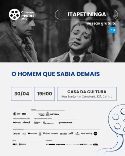 Encerrando a programação, no dia 30 de abril, às 19h, será exibido o clássico “O Homem Que Sabia Demais”, de Alfred Hitchcock. Produzido em 1934, o suspense acompanha um casal que, após tomar conhecimento de um plano contra um diplomata inglês, tem a filha sequestrada por criminosos e precisa agir para salvá-la. O filme tem classificação indicativa de 10 anos e será exibido em versão legendada e restaurada.