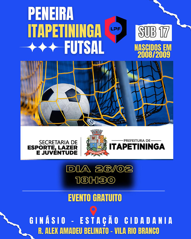 O Ginásio Poliesportivo da Estação Cidadania se tornará palco de talentos para o futsal masculino, com a realização de peneiras que visam selecionar atletas para representar Itapetininga na Liga Paulista de Futsal (LPF). O evento, que será realizado em diversas categorias, oferece uma chance única para jovens da cidade que sonham em se tornar atletas profissionais.