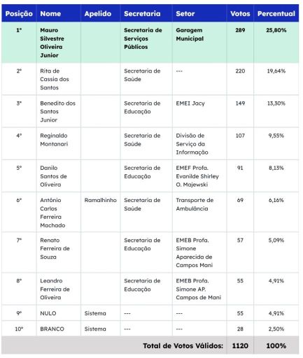 O processo eleitoral ocorreu de forma democrática, transparente e respeitando todos os critérios estabelecidos pela legislação vigente. A votação foi encerrada no dia 14 de abril de 2025 e, na data desta terça-feira, 15 de abril de 2025, foi realizada a apuração dos votos, resultando na escolha dos membros eleitos que comporão a CIPA no próximo mandato.