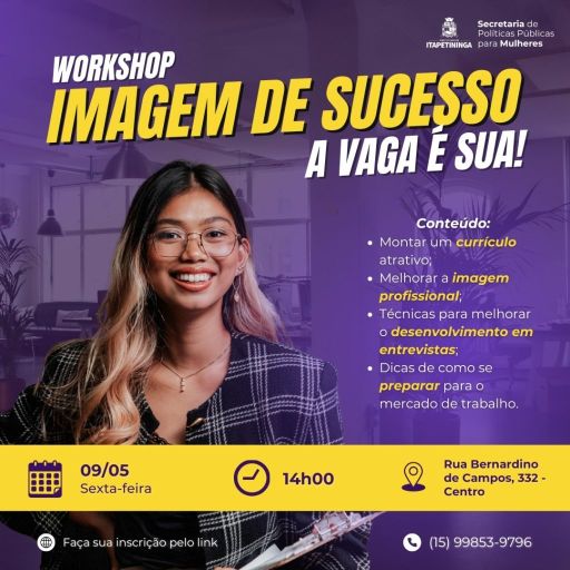 A Secretaria convida todas as mulheres interessadas em aprimorar sua imagem profissional e ampliar suas chances no mercado de trabalho a participarem.