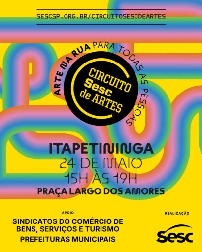 O Circuito Sesc de Artes é realizado pelo Sesc São Paulo em parceria com Prefeitura de Itapetininga, por meio da Secretaria de Cultura e Turismo.