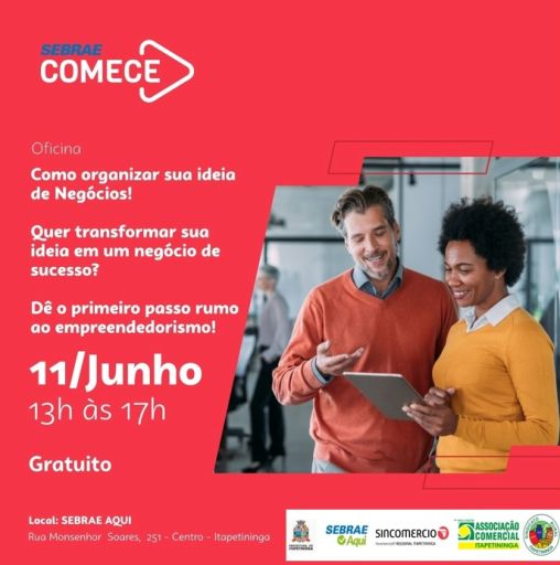 A Prefeitura de Itapetininga, em uma parceria com o Sebrae Aqui, Sincomércio, Associação Comercial e Sindicato Rural, está com vagas abertas para uma oficina gratuita e presencial sobre “Como Organizar sua Ideia de Negócios”.