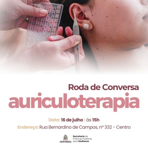 A Secretaria de Políticas Públicas para Mulheres de Itapetininga convida o público para participar da Roda de Conversa sobre Terapia Auricular, que acontecerá no dia 16 de julho, às 15h, na sede da secretaria, localizada à Rua Bernardino de Campos nº 332, no Centro.
