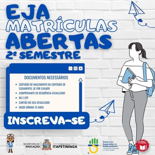 As inscrições para a EJA – Educação de Jovens e Adultos estão abertas para o segundo semestre de 2025.