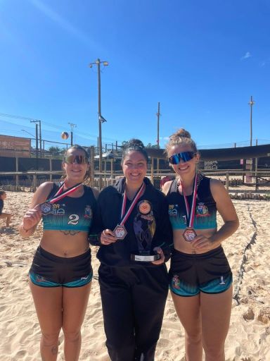 As atletas de Vôlei de Praia de Itapetininga, Kelly Aparecida de Oliveira Pedroso e Rafaela Mira de Araújo, treinadas pela professora Andressa Cunha, da Secretaria de Esporte, Lazer e Juventude, conquistaram o bronze nos Jogos Regionais que são realizados em Itapetininga.