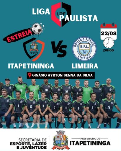 A equipe principal do Futsal Masculino de Itapetininga, o “Itapê Futsal”, estreia em casa, nesta sexta-feira, dia 22, às 20h, contra o time Brutus Futsal de Limeira, pela Copa da Liga Paulista de Futsal (LPF) 2025.
