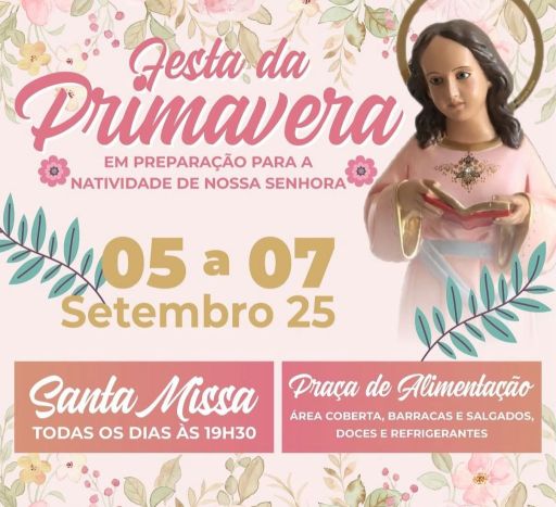 A Paróquia São Paulo Apóstolo, de Itapetininga, convida toda a comunidade para participar da Festa da Primavera 2025, que acontece entre os dias 05 e 07 de setembro, em preparação para a Natividade de Nossa Senhora. A programação contará com momentos de espiritualidade e confraternização, unindo fé, tradição e alegria em família.