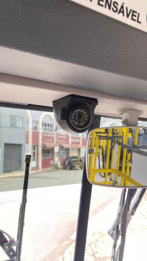 Câmeras de segurança internas e externas, ampliando a proteção dos passageiros.