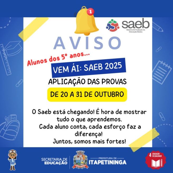 Atenção, alunos dos 5º anos e famílias: vem aí o SAEB 2025
