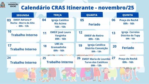 Com o objetivo de ampliar o acesso da população da zona rural aos serviços da assistência social, o CRAS Itinerante divulgou o calendário de atendimentos para o mês de novembro. A ação, promovida pela Prefeitura de Itapetininga, por meio da Secretaria de Assistência Social, leva orientação, atualização de cadastros e encaminhamentos a diversas comunidades, garantindo que as famílias que vivem em áreas mais distantes também tenham acesso aos benefícios e programas sociais.