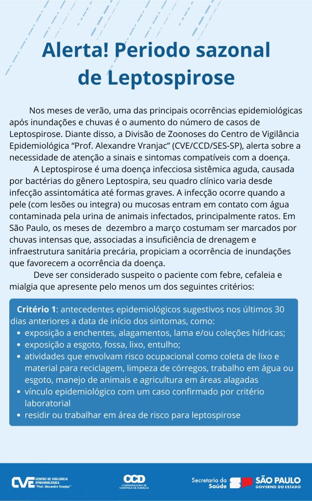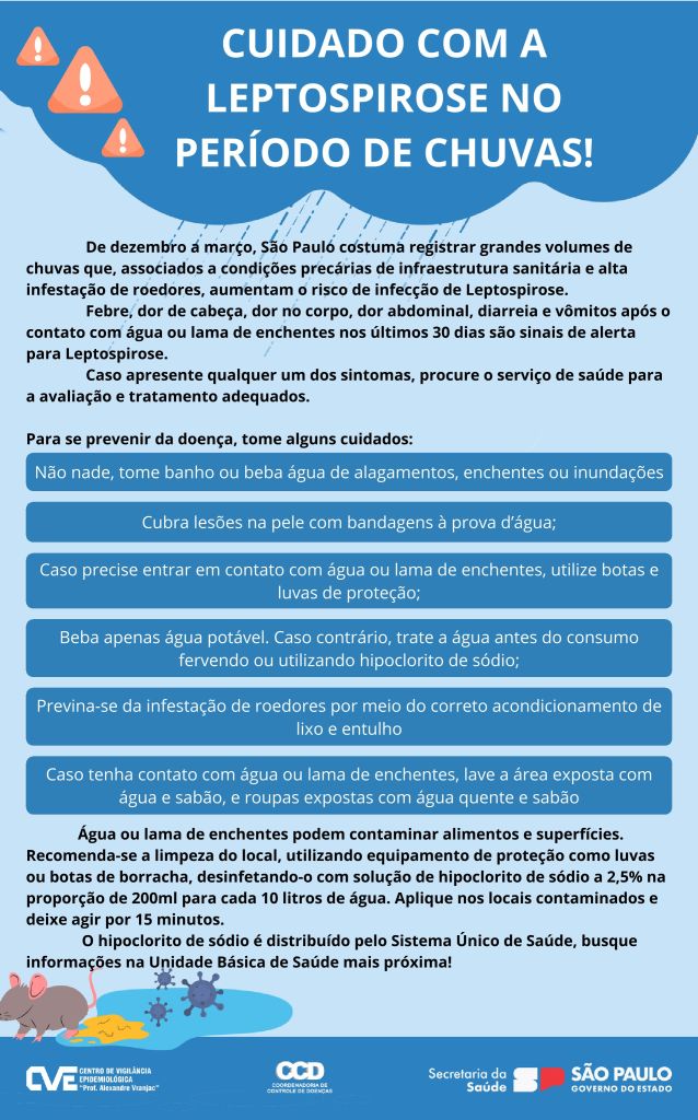 Secretaria de Saúde informa sobre prevenção à Leptospirose no período chuvoso