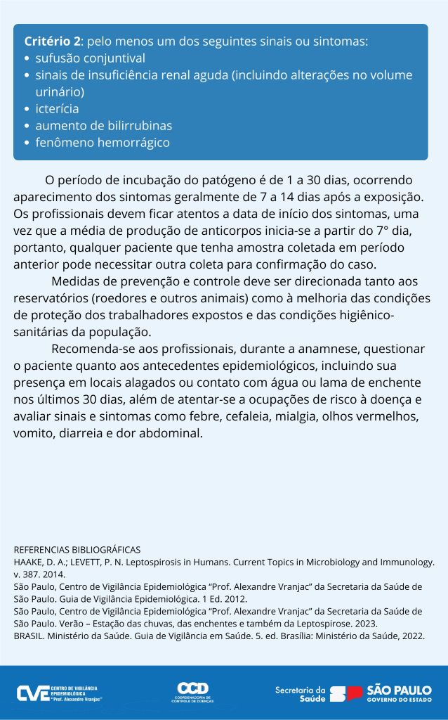 A leptospirose é uma doença infecciosa causada pela bactéria Leptospira, transmitida pela urina de animais infectados, especialmente ratos, que contamina a água e o solo. A infecção em humanos ocorre pelo contato da pele com ferimentos ou por mucosas com a água ou lama contaminada, sendo mais comum durante enchentes. Os sintomas variam de leves a graves, podendo incluir febre, dor de cabeça, dores musculares e icterícia (pele amarelada) nos casos mais severos. O tratamento deve ser iniciado precocemente em um serviço de saúde, com orientação médica para uso de antibióticos e repouso.