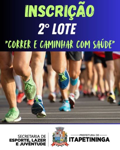Inscrição para o 2º Lote da Etapa Final do “Correr e Caminhar com Saúde” de Itapetininga será no próximo sábado, dia 29, e no domingo, dia 30