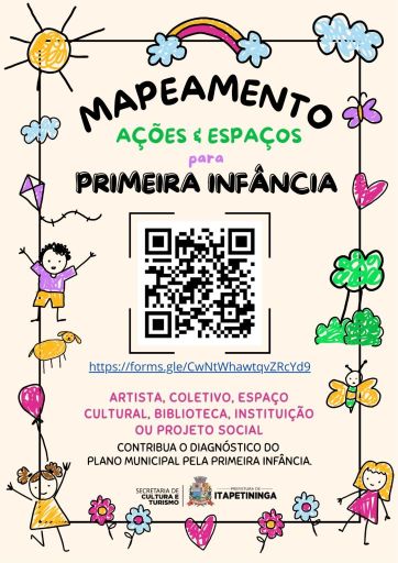 Pensando nisso, a Secretaria de Cultura e Turismo, em apoio à Secretaria de Educação, está realizando um mapeamento das ações culturais voltadas à primeira infância (0 a 6 anos) para a construção do Plano Municipal pela Primeira Infância (PMPI).