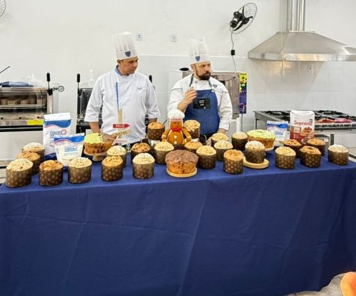 Durante o treinamento, 100% prático, o Chef Claudio ensinou novas técnicas no preparo de panetones e receitas exclusivas que prometem elevar o nível de produção dos profissionais locais, uma oportunidade imperdível para aqueles que desejam se destacar no mercado de trabalho.