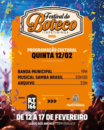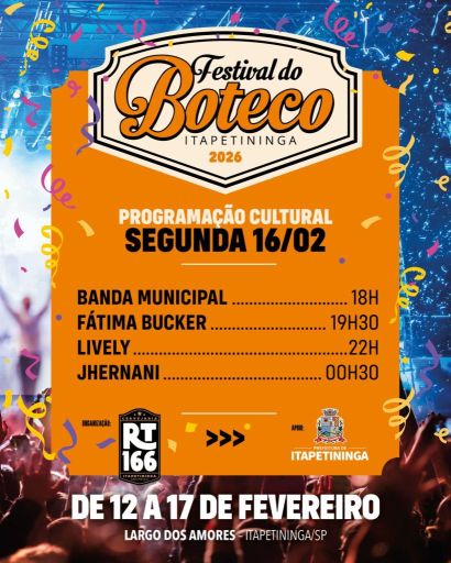 Itapetininga se prepara para receber um dos eventos gastronômicos e culturais mais aguardados do ano: o Festival do Boteco 2026, marca registrada das comemorações de Carnaval no município. O evento será realizado de 12 a 17 de fevereiro, no Largo dos Amores, reunindo música ao vivo, marchinhas, gastronomia e lazer para toda a família.