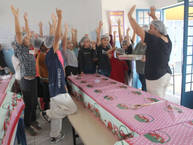 Dentro dessa perspectiva, a escola trabalhou a culinária com o manuseio e preparo de bolos que estão inseridos no cardápio da escola. Desta forma, os alunos puderam vivenciar medidas de peso, litro, tempo e de transformação de medidas não padronizadas em medidas padrão.