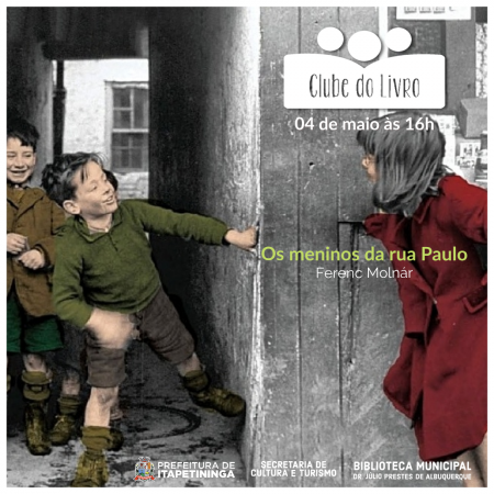 Encerrando a programação literária na Biblioteca Municipal “Dr. Júlio Prestes de Albuquerque” às 16h, o Clube do Livro debate a obra “Os Meninos da Rua Paulo”, de Ferenc Mólnar, sob a mediação da jornalista e voluntária do projeto, Fernanda Gehrke.