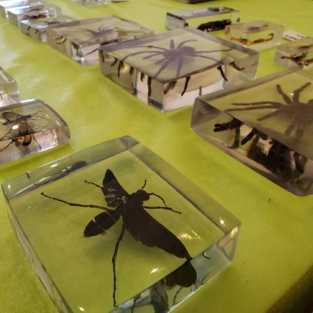 Além da mostra, os visitantes podem aprender as técnicas de incrustação em resina.