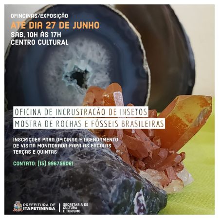 Fósseis de Mesosaurus e artefatos indígenas encontrados em Itapetininga e uma mostra de rochas brasileiras e insetos incrustados em resina, podem ser vistos aos sábados das 10 às 17h, até 27 de junho no Centro Cultural de Itapetininga.