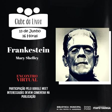 A Biblioteca Municipal “Dr. Júlio Prestes de Albuquerque” irá realizar um encontro virtual do Clube do Livro, em Itapetininga. Será dia 13 de junho, sábado, às 16 horas. A obra escolhida é “Frankestein”, de Mary Shelley.