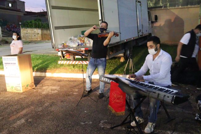 Quem recebeu a dose da vacina no Ginásio Municipal “Ayrton Senna da Silva” teve a oportunidade de ouvir canções instrumentais. Renato Lima no teclado e Alexander Vinícius Garcia na viola erudita.