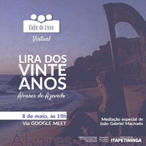 O Clube do Livro comemora 7 anos de criação conversando sobre a obra “Lira dos Vinte Anos”, de Álvares de Azevedo, em um novo encontro virtual no próximo sábado, às 19h, via Google Meet. Para participar os interessados podem entrar em contato com a Biblioteca Municipal “Dr. Júlio Prestes de Albuquerque” por telefone, whatsapp ou e-mail para receberem o link do grupo e o convite da reunião, pelos contatos (15) 3272-3265, whatsapp (15) 99825-6949 e e-mail bibliotecaitape@hotmail.com