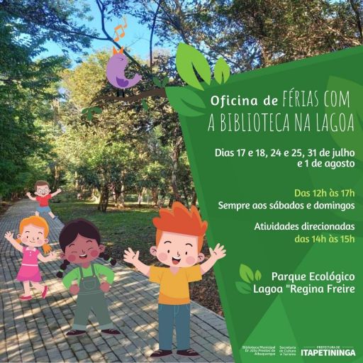 A Biblioteca Municipal Dr. Júlio Prestes de Albuquerque estará com suas atividades no Parque Ecológico “Lagoa Regina Freire”, no bairro Chapadinha, durante as férias, levando literatura, histórias e brincadeiras para as crianças.