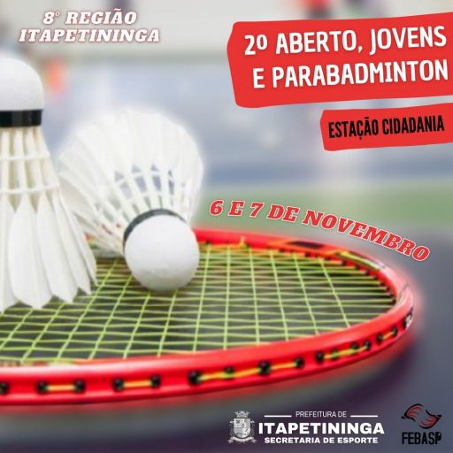 Nos dias 06 e 07 de novembro ocorrerá o 2º aberto de jovens e parabadminton, da Etapa Estadual de Badminton. Itapetininga é a 8ª região onde ocorrerá os jogos da modalidade, que serão realizados no Ginásio Poliesportivo – Estação Cidadania.