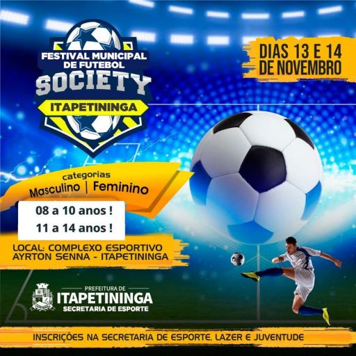 Nos dias 13 e 14 de novembro será a vez do Torneio de Futebol Society, em comemoração ao mês de aniversário de Itapetininga. O futebol society é a modalidade onde se joga com sete jogadores.