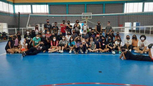 Nas aulas de iniciação de vôlei, os alunos se reuniram para confraternizar. Aulas como as de balé, judô e futsal no núcleo do Céu das Artes também contaram com atividades que marcaram o encerramento do ano.