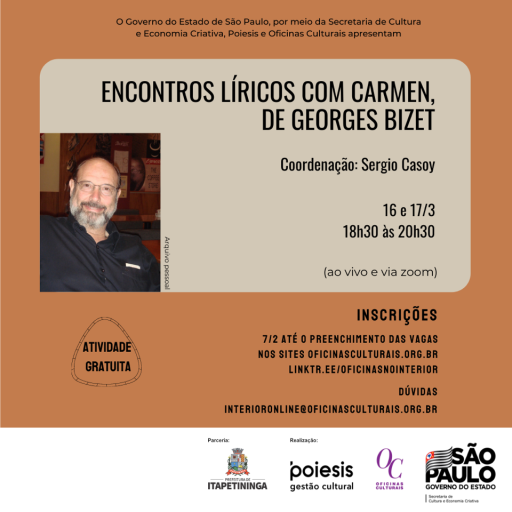 Com a parceria da Prefeitura de Itapetininga, as oficinas culturais “Formação para o Interior” são uma iniciativa do Governo do Estado de São Paulo, por meio da Secretaria de Cultura e Economia Criativa, e Poiesis Gestão Cultural.