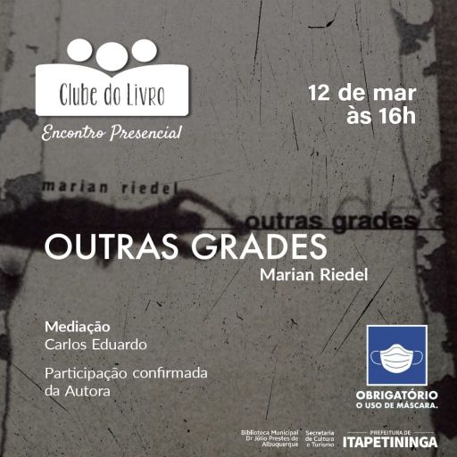 A obra escolhida para leitura e debate será "Outras Grades de Marian Riedel", escritora itapetiningana, que confirmou presença no evento.