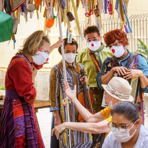 “Pensamos em todos os detalhes com relação a segurança sanitária como disponibilização de máscara e de álcool, assim como estratégias de distanciamento, para que, neste momento de retomada das ações presenciais, o cortejo cênico musical possa sensibilizar o público para uma interação social delicada, cuidadosa, mas alegre, que valorize a memória e o afeto como elementos essenciais para a construção de novos encontros ”, comenta Iarlei Rangel do Grupo Esparrama.