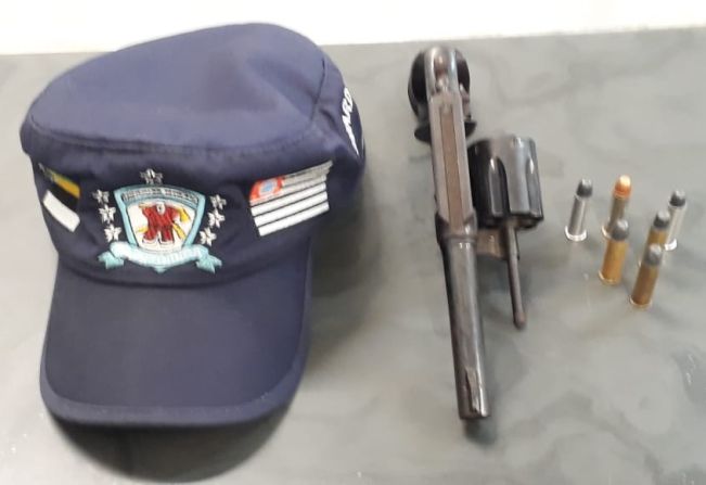 Durante vistoria, a GCM constatou que o suspeito havia dispensado um revólver calibre 38 com seis munições e numeração raspada.