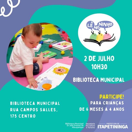 A Biblioteca Municipal “Dr. Júlio Prestes de Albuquerque” retorna com o projeto Lê no Ninho neste sábado, 02, às 10h30. O encontro é de graça e voltado para crianças de 6 meses a 4 anos de idade e seus responsáveis.
