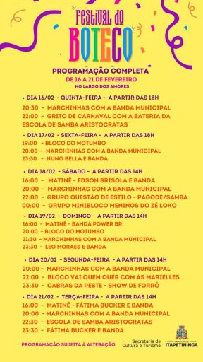 Programação Completa Festival do Boteco