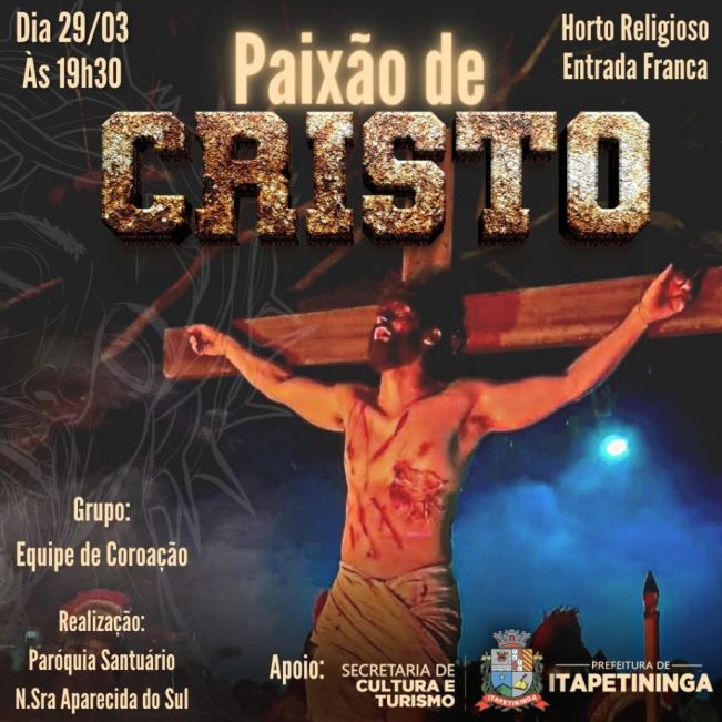 Novamente com apoio da Secretaria de Cultura e Turismo da Prefeitura de Itapetininga, a encenação promete emocionar o público e faz um convite para toda a população prestigiar este momento tão significativo da fé cristã.