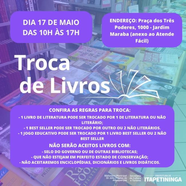 As regras seguem as mesmas e no acervo de troca terá obras de literatura adulta e infantil, livros técnicos, de autoajuda, saúde e best-sellers e muitos outros. Além de livros, serão aceitos também jogos educativos para troca. Os jogos devem estar em ótimo estado e com todas as peças e componentes