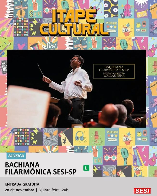 O Concerto da Bachiana Filarmônica SESI-SP no “Itapê Cultural” será realizado nesta quinta-feira, 28 de novembro, às 20h, na quadra externa do SESI Itapetininga. A abertura dos portões será às 18h30.
