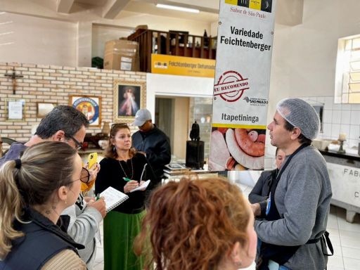 Já na Feichtenberger Defumados, a comitiva foi recebida por Rogério Feichtenberger, representante da quarta geração da família fundadora, que apresentou a história da empresa — referência na produção de defumados desde 1933 — e destacou a recente conquista da marca: a linguiça artesanal da casa foi finalista de um concurso exibido no programa “Mais Você”, da TV Globo. O grupo também conheceu a fábrica e participou de uma degustação exclusiva.