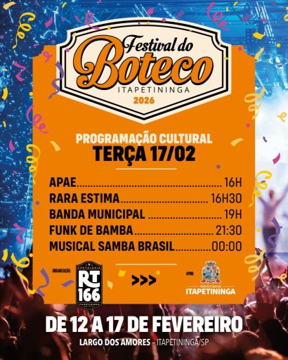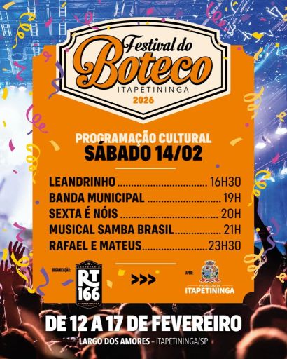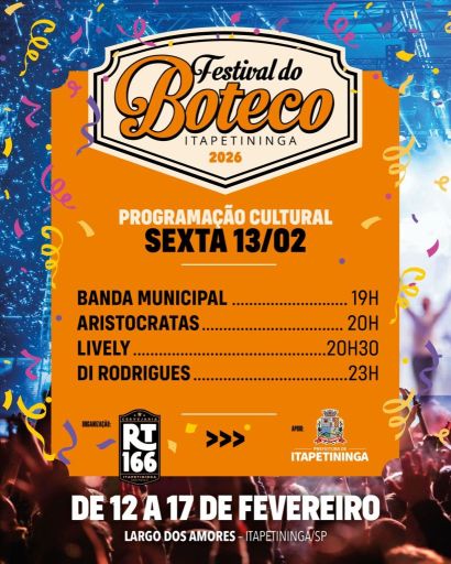 Itapetininga se prepara para receber um dos eventos gastronômicos e culturais mais aguardados do ano: o Festival do Boteco 2026, marca registrada das comemorações de Carnaval no município. O evento será realizado de 12 a 17 de fevereiro, no Largo dos Amores, reunindo música ao vivo, marchinhas, gastronomia e lazer para toda a família.
