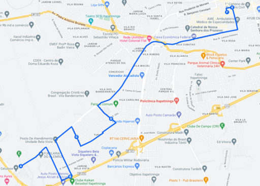 | Chegada: Rua Cel Afonso |