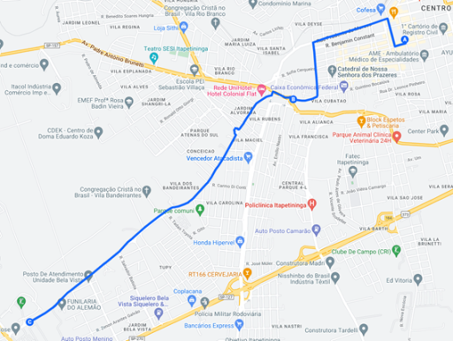 | Chegada: Rua Cel. Afonso |