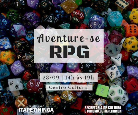 Anote aí. Neste domingo, dia 23, você têm um encontro marcado no Centro Cultural, centro de Itapetininga. A partir das 14h, mais uma edição do Aventure-se RPG. Um encontro cheio de aventura e muita diversão. O local ideal para exercitar sua criatividade e dar boas risadas com os amigos.