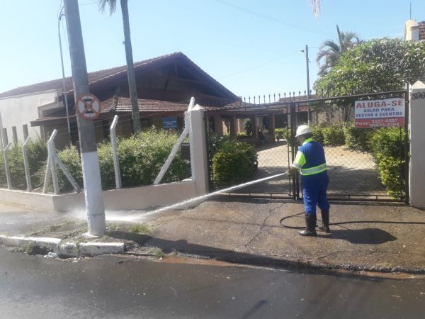 O serviço é feito diariamente utilizando um caminhão bomba que realiza a higienização com uma solução de água com cloro em alta concentração, para criar uma barreira sanitária.
