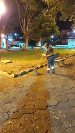 As equipes seguem dia e noite trabalhando na limpeza e conservação de Itapetininga. Durante o período noturno, as equipes também percorrem as praças para realizar o serviço de roçagem e limpeza.