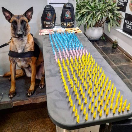 O fato ocorreu nesta segunda, dia 29. A fêmea da raça Belga Mallinois, Ákila, localizou 300 pinos de cocaína, o que equivalente a 600 gramas, além de uma porção de crack, que pesava 100 gramas. O suspeito foi detido e levado ao Plantão Policial.