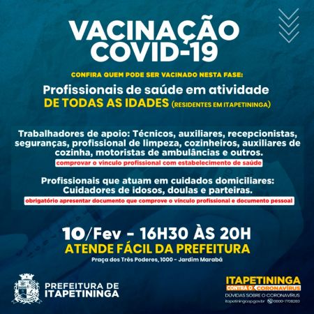 Prefeitura de Itapetininga divulga novos grupos para vacinação contra Covid-19
